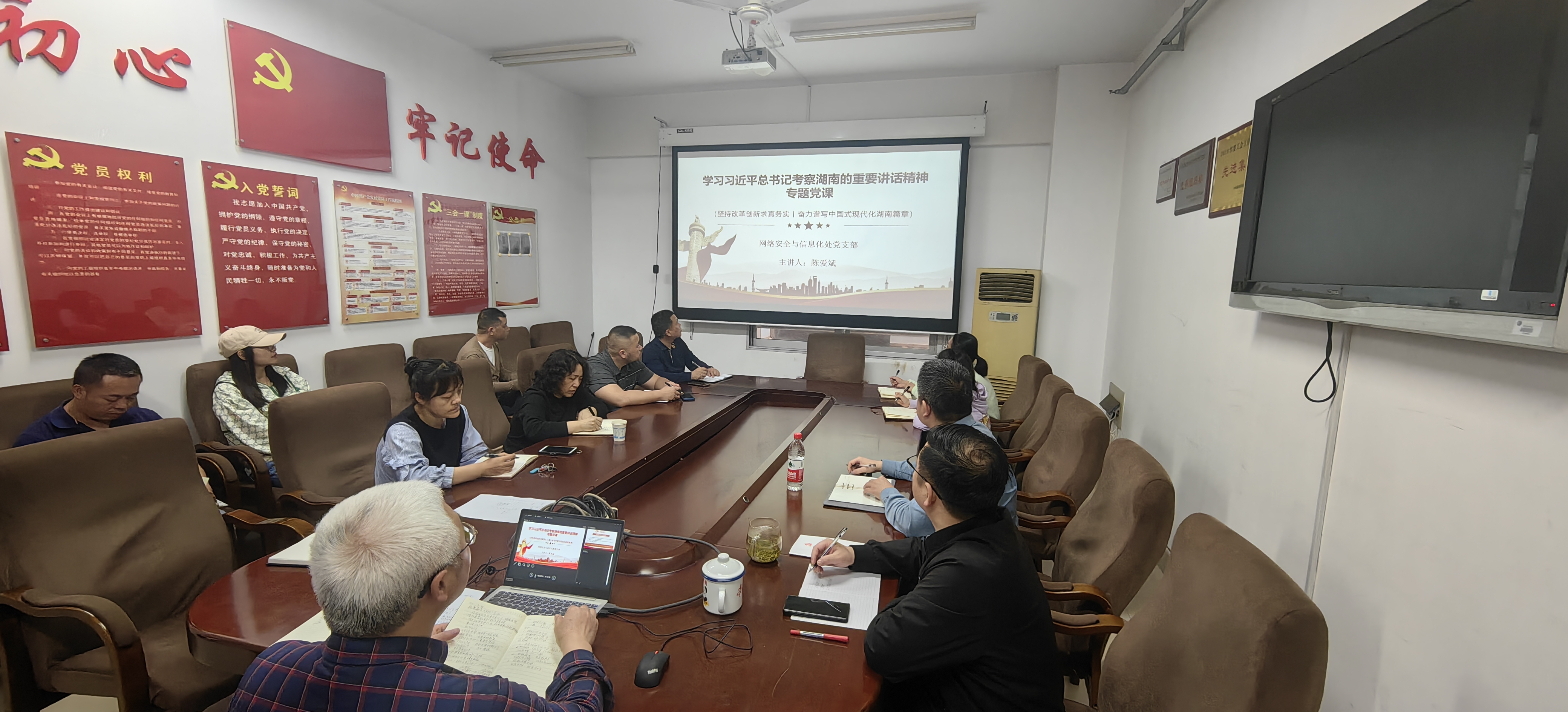 支部全体党员集中学习了习近平总书记在湖南考察的重要指示精神、新时代推动中部地区崛起座谈会精神、十二届省委理论学习中心组第三十二次集体学习会议精神、学校学校党委会(扩大)会议精神。随后陈书记要求大家今后在工作中:增强纪律意识,提高党性修养,注重廉洁自律,明底线、知敬畏;提升服务意识,为全体师生主动服务、贴心服务;提高安全意识、风险意识,防微杜渐,提前做好查漏补缺;深入思考信息化建设的重点工作,做好中长期建设规划,扎实推进各项工作落实落地。